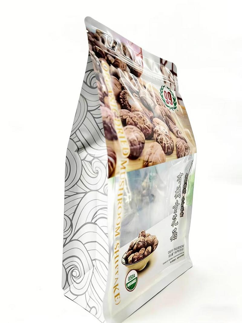 Выбор упаковки напрямую влияет на хранение и товарный вид сухофруктов. Основные типы упаковки, доступные на рынке, включают трехсторонние, четырехсторонние пакеты, пакеты-стойки и восьмисторонние пакеты. Среди них предпочтительным выбором является пакет с восьмисторонним уплотнением. По сравнению с другими типами пакетов, пакет с восьмисторонней сваркой имеет восемь запечатанных краев, что позволяет ему стоять вертикально и иметь плоское дно, что делает его идеальным для демонстрации на полках магазинов. Этот тип сумки имеет пять сторон для брендинга и может быть персонализирован различной графикой, что делает его подходящим как для розничной торговли, так и для электронной коммерции.
